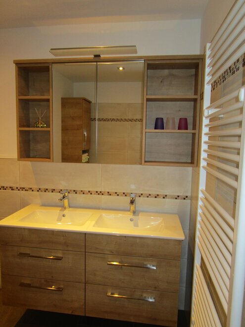 double sink, separate toilet, shower