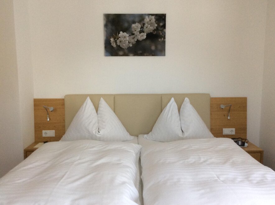 Pretty double room with shower and toilet, seating corner, flat screen with cable-tv, free W-Lan, radio, hair-dryer, balcony