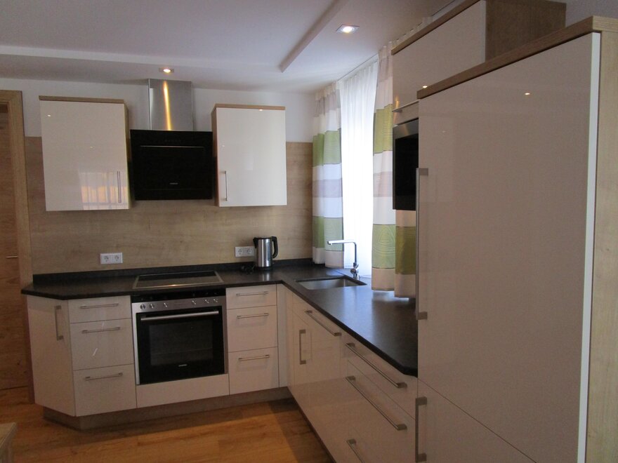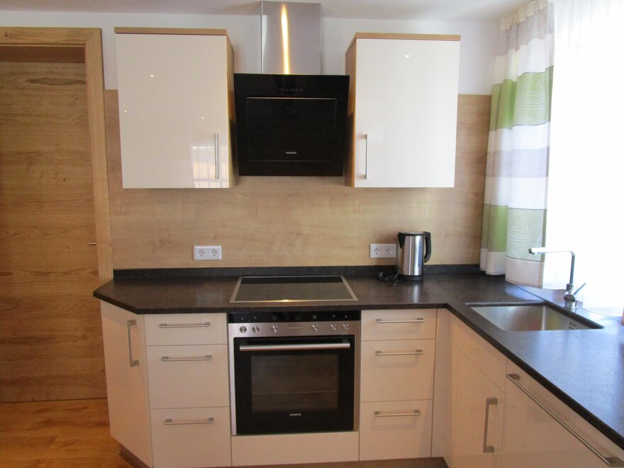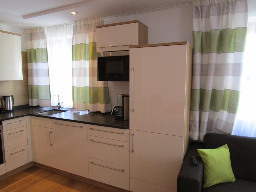 Full equipped kitchen with eating corner, cooking utensils, fridge-freezer, oven with ceran, microwave, dishwasher, toaster, coffee machine,
