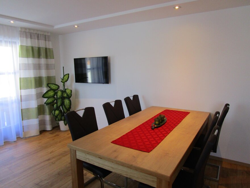 The parking lot in front of the house, the beautiful garden with breathtaking views on the high plateau with a view of the Hohe Tauern, a generously traditonal breakfast room for fun hours ...