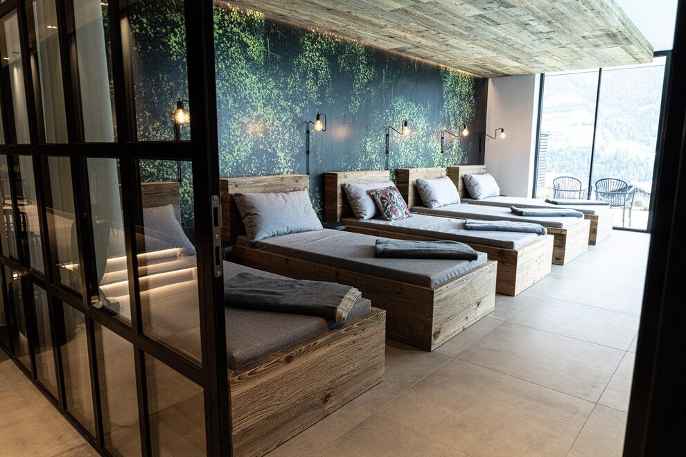Our newly and modernly designed suite at the summit with wooden floors and a balcony, a separate sleeping area, and a separate living room with a sofa bed for up to two people offers you pure relaxing living comfort.