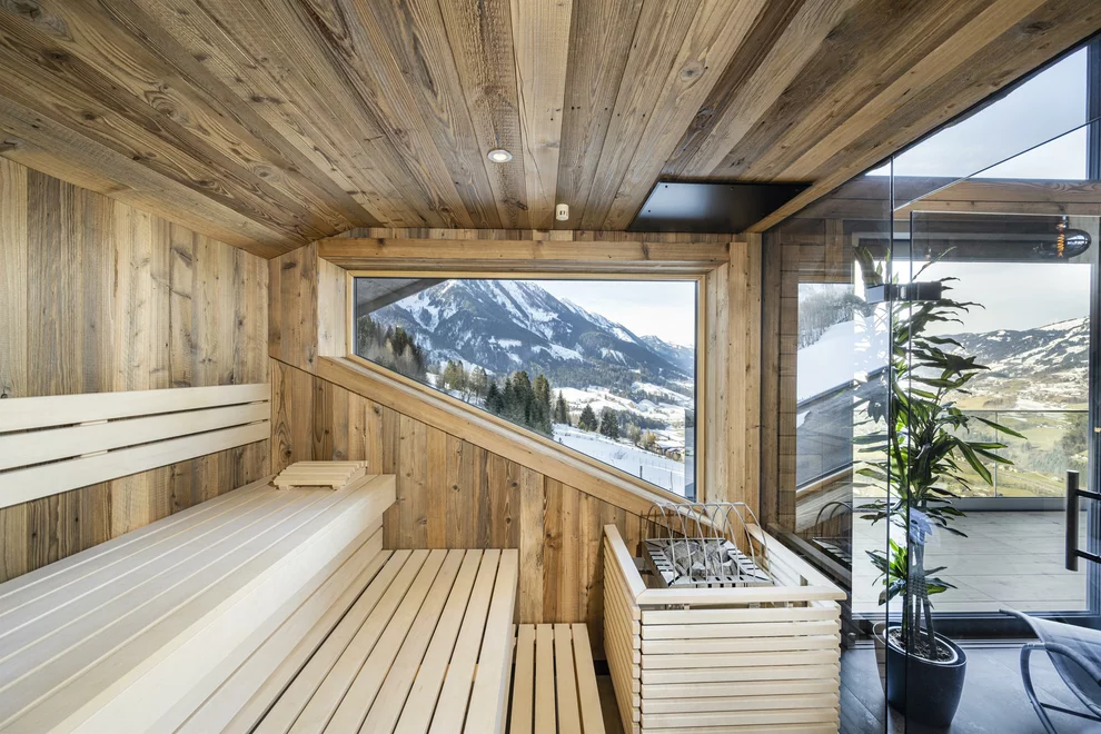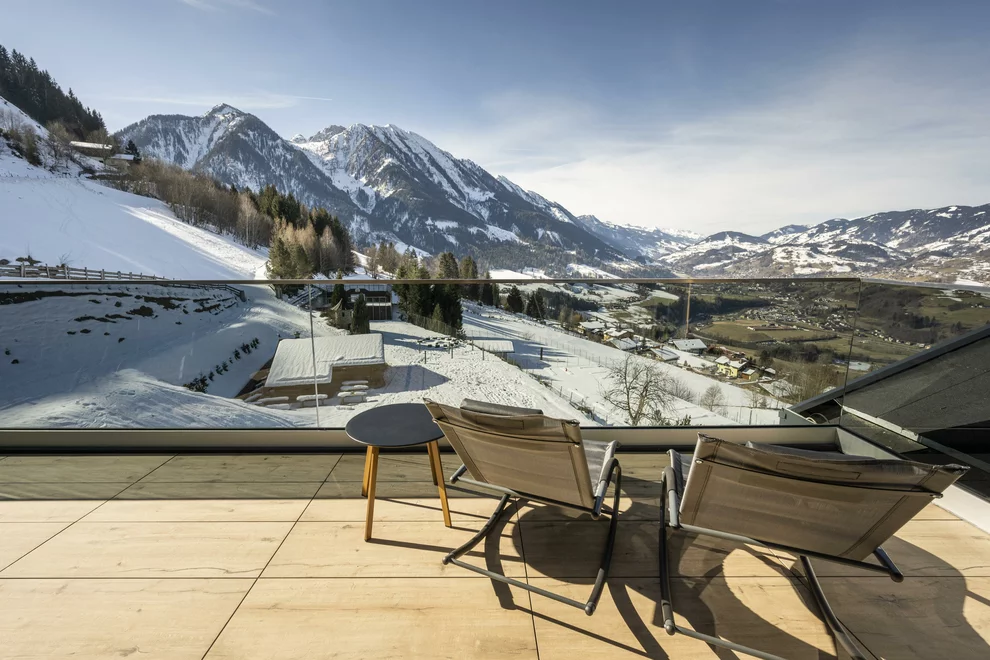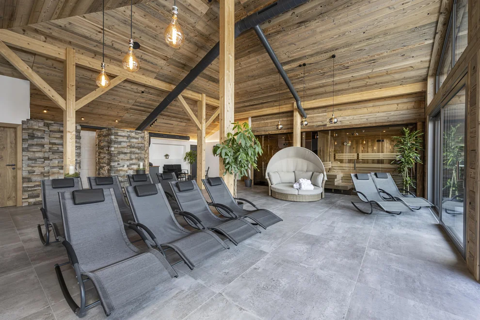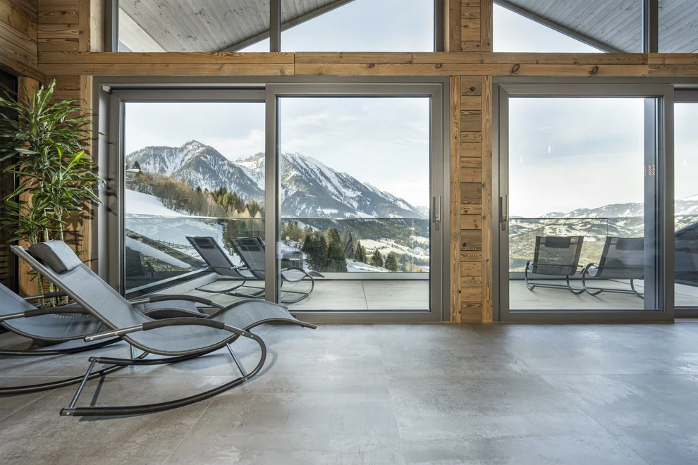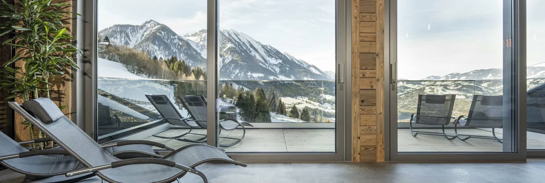 In the wellness area at the top you will find a Finnish sauna with panoramic window, a bio-herbal sauna, infrared chairs and a relaxation room with breathtaking views of the Salzburg mountains and the Salzach valley.