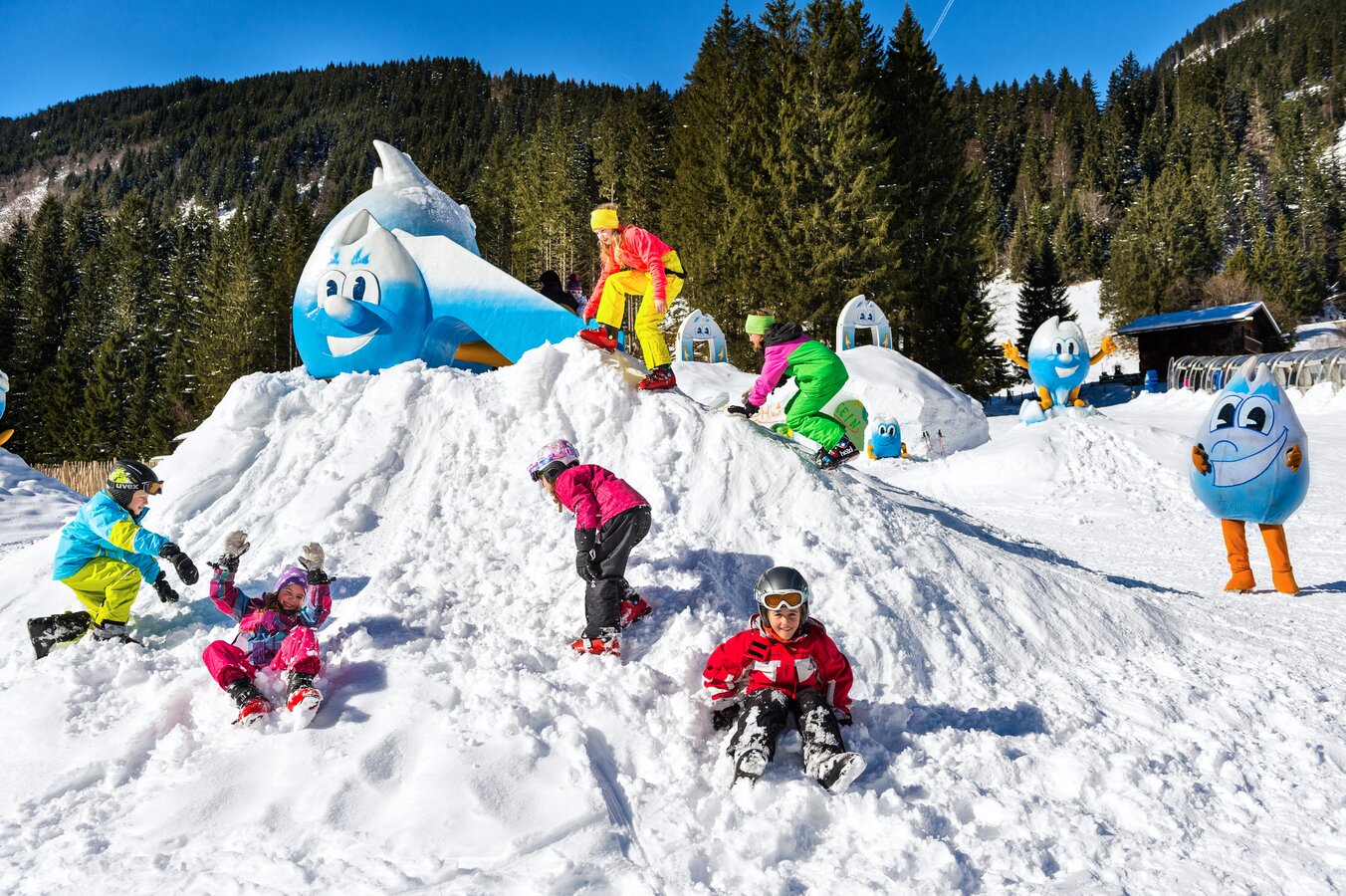 and save all their energy for their first turns in the snow. The little ones can learn to ski in a carefree way with lots of fun and imagination.