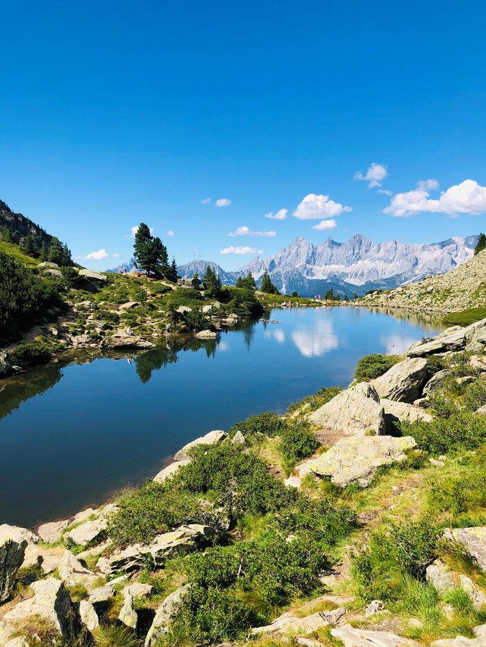 I simply have to reveal my personal absolute favourite first - the Spiegelsee lake on the Reiteralm is an absolute must-see on a holiday in Ski amadé. You can either walk from the valley station of the ‘Preunegg Jet’ to the Spiegelsee or take the gondola up and start from there. The view once you reach the top is simply priceless! The magnificent Dachstein massif, which is reflected in the beautifully situated lake, is sure to amaze everyone. An absolute recommendation from me