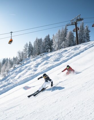 A skier gives a thumbs-up while a friend laughs. | © Ski amadé