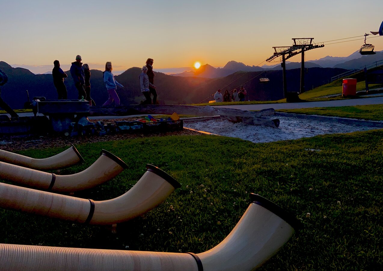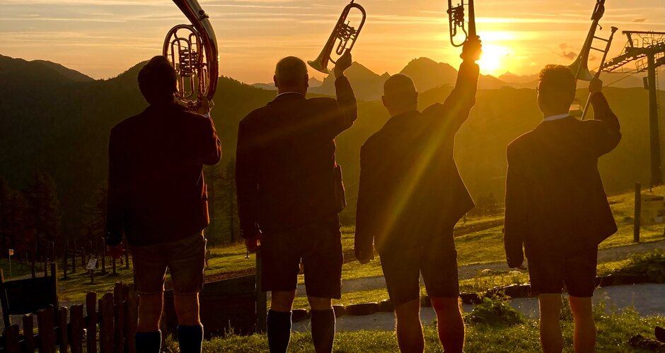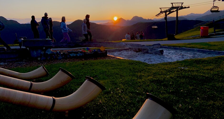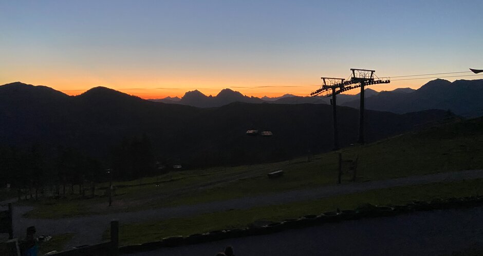 Well before sunrise, you can take the Gamskogelbahn comfortably up to 1,900 meters above sea level. Once at the top, a crackling campfire awaits you, atmospheric Alpine music and a quiet place to watch the sun rise over the mountains. Afterwards, a hearty breakfast awaits you in the Gamskogelhütte.