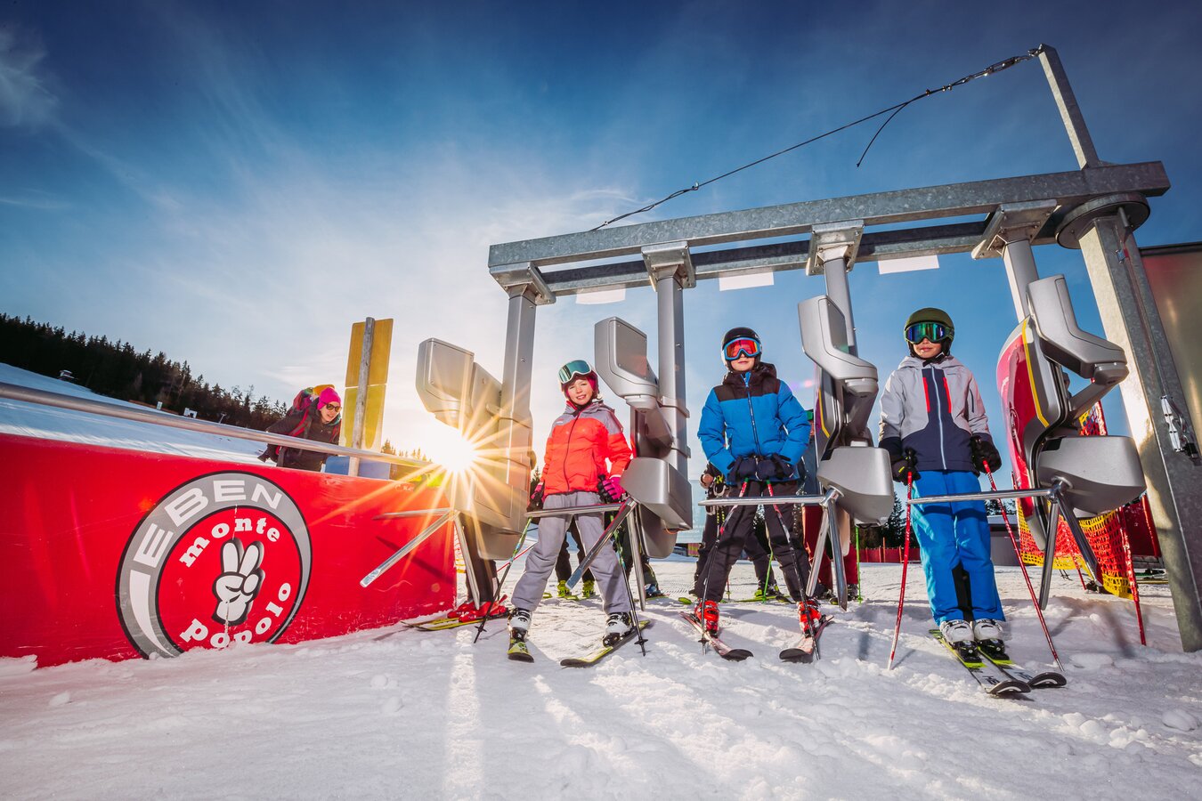 In the kids‘ area, all slopes and lifts are particularly child-friendly and safe, including a 6-seater chairlift with special safety bars and weather hoods.