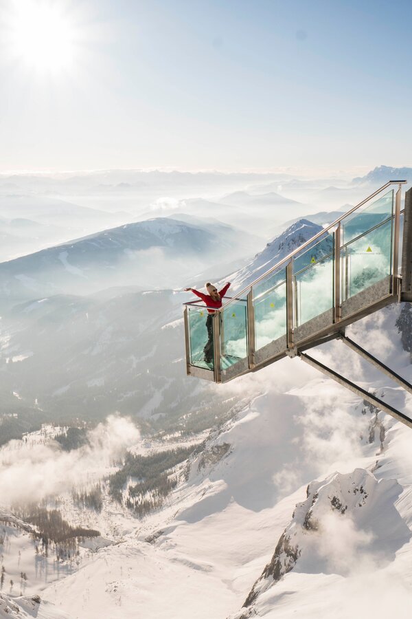 The run down is a 25 km long route from the Dachstein summit regions via the Simonyhütte and Gjaidalm down to the Hallstätter See Lake, 2,200 m below. To get back to the Dachstein valley station without any problems, there are Planai-buses from Obertraun to Schladming.