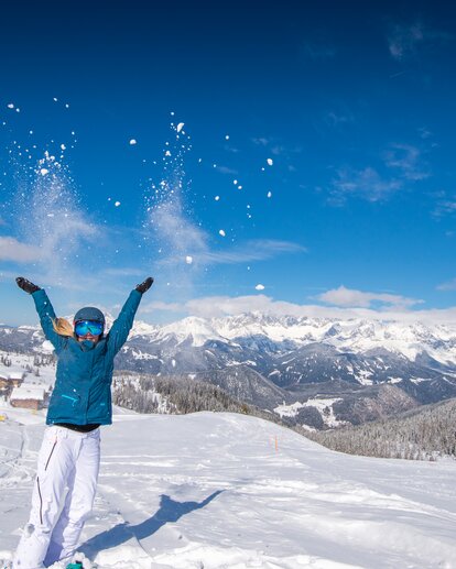 "Take your time – enjoy yourself!" Magnificent natural snow pistes on the sunny high plateau, unique panoramic views, plenty of room on the pistes, cosy ski lodges and the large range of facilities for children give you a very warm invitation.