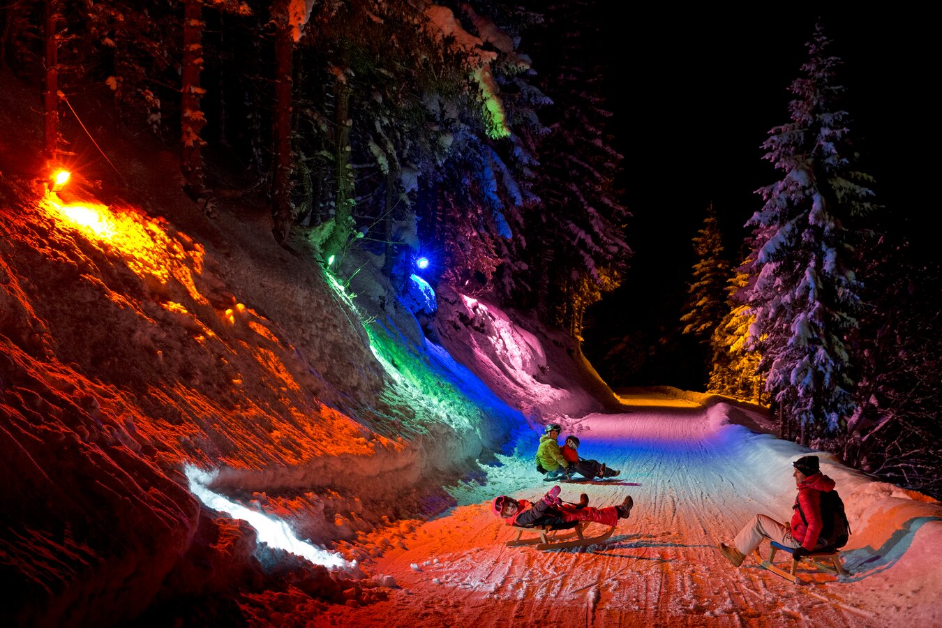 On a 1.2-kilometer permanent race track, both skiers and snowboarders can prove their skills and carve to their heart's content.