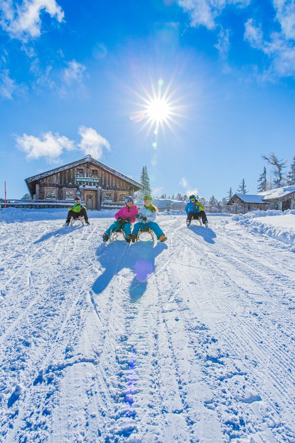 Whether steep curves, waves or the snow tunnel – over a length of 575 metres, fun obstacles provide plenty of adventure.