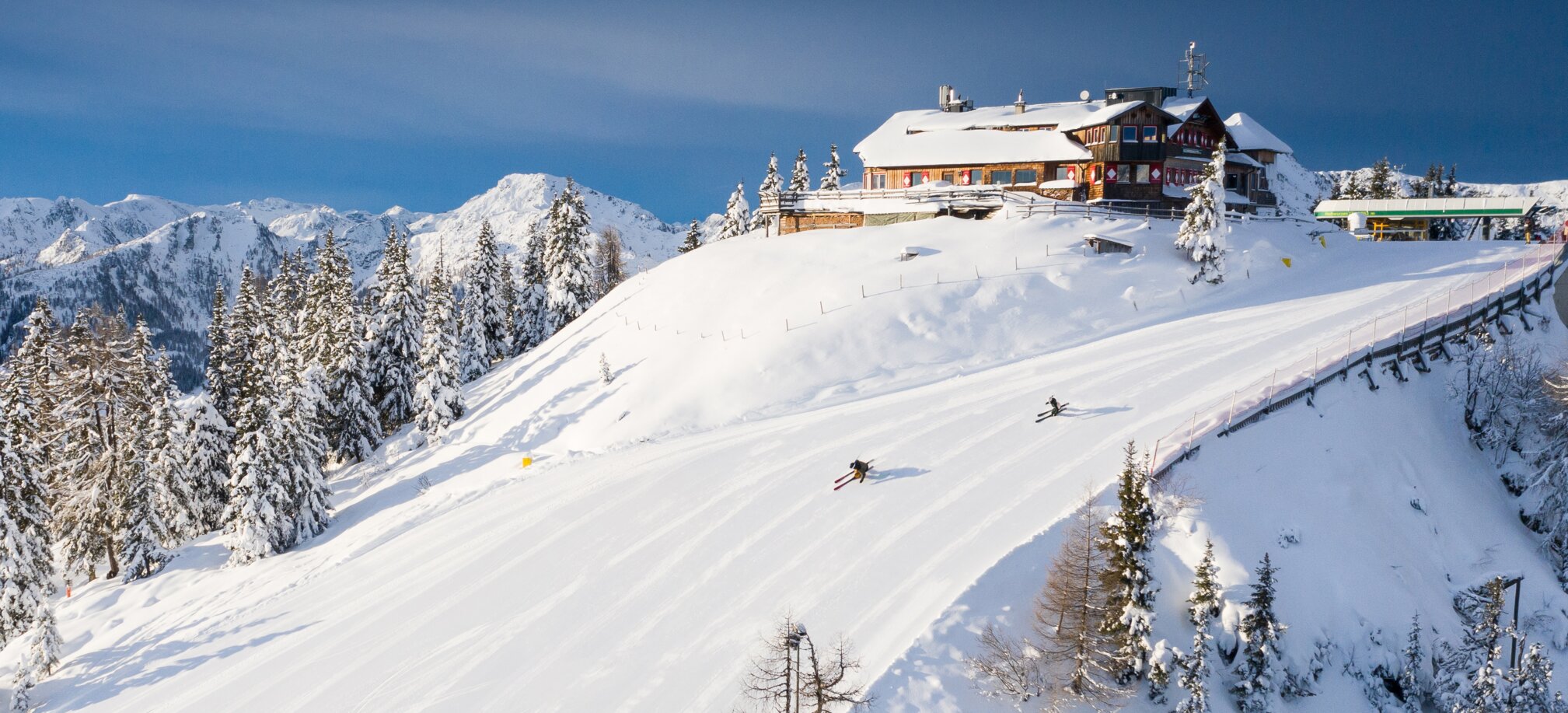 Fantastic skiing fun including a wonderful view of the Dachstein. Here you will discover more than 19 kilometres of slopes and 8 modern cable cars and lifts. The Hochwurzen wins you over with its wide, sporty and family-friendly slopes. If you have not had enough winter fun, you can let off steam whilst night skiing on the perfectly groomed floodlit slope or on the seven-kilometre-long toboggan run.