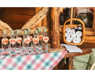 ► Fresh bread, pickled vegetables, juices, schnapps and liqueurs from own production.