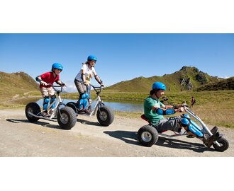 Action and leisure fun for young and old! The mountain carts take you down the 5,5 km long track from the Laireiteralm to the middle station of the Grossarl cable cars.