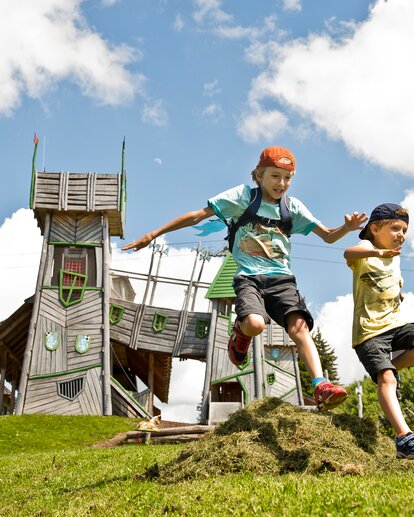 Secured to a steel cable, you and your parents climb the 40-meter-high „Drachenwand“ rock wall and cross a ravine on a 6-meter-long rope bridge. The start of Drachis Via Ferrata is approx. 5 minutes' walk from the Buchauhütte.