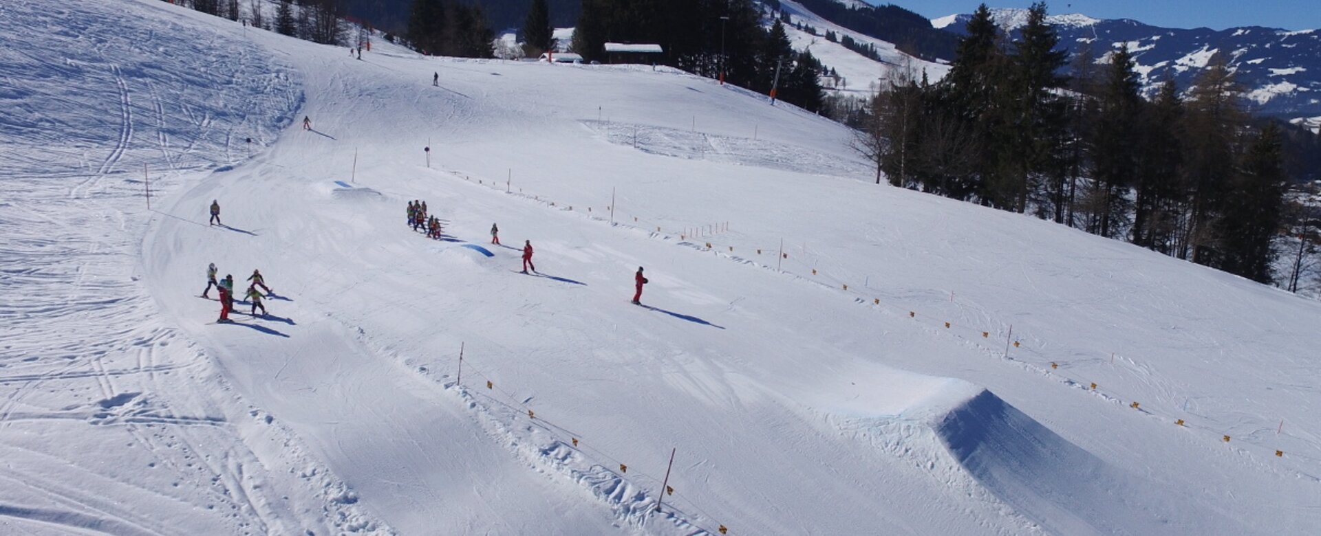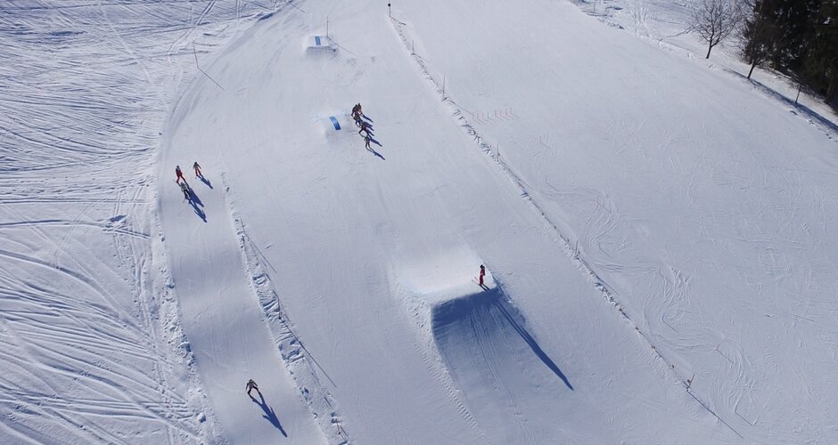 Ideal for beginners, an easy line awaits you, with 2 boxes, a jump and a wave run. More advanced riders can risk leaping over the show jump at the Skishow Maria Alm.