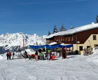 The Schoarlhütte is located in the middle of the "World Cup Downhill". It offers a wonderful view of the Dachstein massif and is one of the alpine ski huts on the Hauser Kaibling.