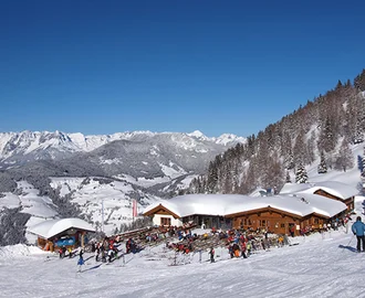 The Skialm Kreuzkogel is located directly between the two mountain stations of the Kreuzkogelbahnen at the highest point of the Grossarltal/Dorfgastein ski area. When the weather is nice you can enjoy the unique mountain panorama on the sun terrace. The rustic and cozy hut offers space for approx. 50-60 people. A special highlight is the après-ski bar right next to the hut.