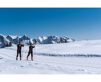 In the cross-country skiing centre Ramsau am Dachstein there is something for everyone. 20 cross-country skiing circuits with different levels of difficulty for beginners and pros, lengths (up to 30 km) and altitudes leave nothing to be desired. With a total of 220 kilometres of trails, there is something for everyone. Many cosy refreshment stops directly on the trails will also spoil you with culinary delights.