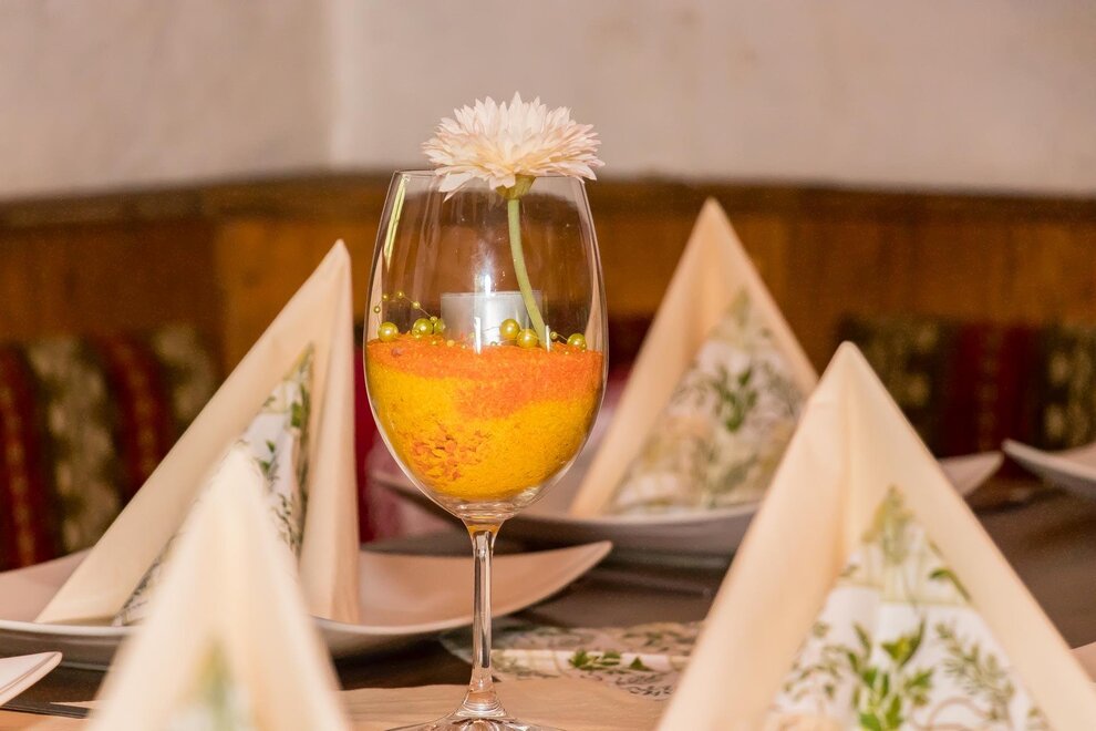 - Mindestabstand von Tischen und Sitzgelegenheiten oder Abstand durch Trennelemente
