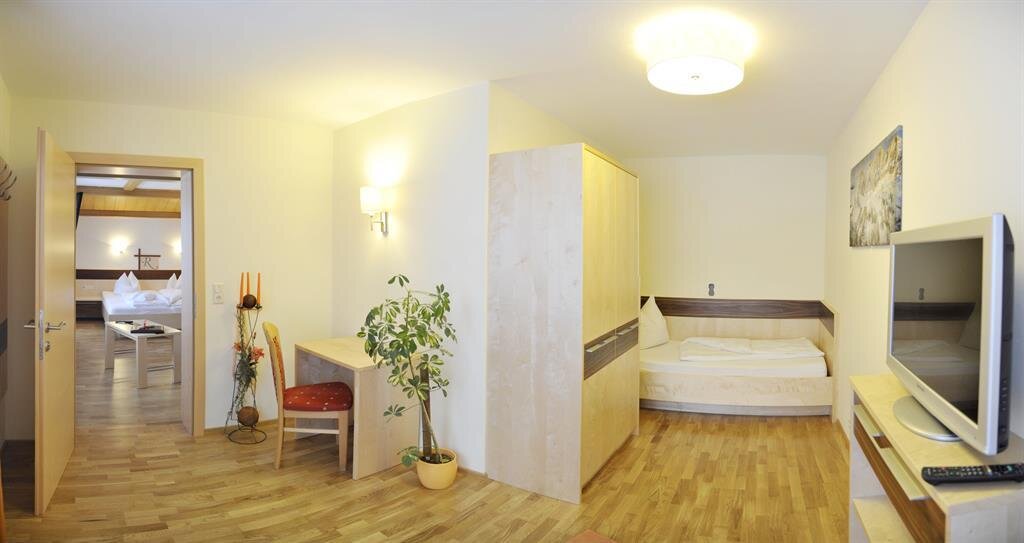 Minibar, Bademantel, Internetanschlussmöglichkeit, Schreibtisch, Fax-Anschluss, Haarföhn, Kabelfernsehen, Toilettenartikel, Nichtraucher Zimmer/App./Whg., Familienzimmer / app., Radiowecker, Gartenmöbel, Balkon, Safe, Radio, Sitzgruppe, Fußende der Betten offen, Fernseher, Telefon, Trockner