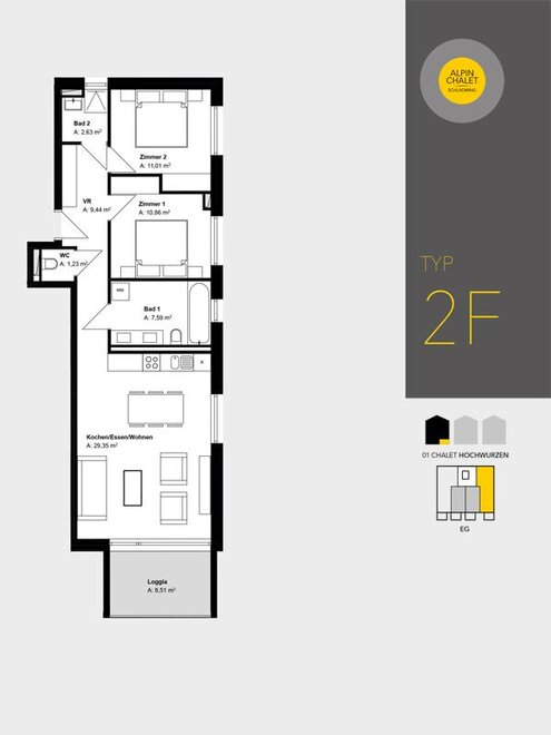 - 8m² large loggia offers a dream view to the town of Schladming and the Planai