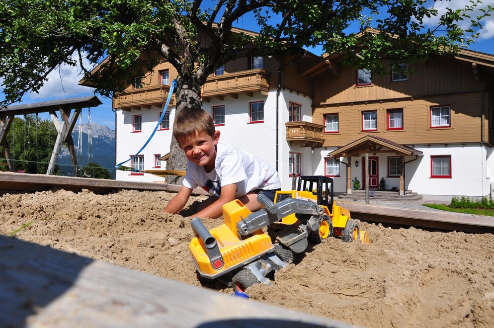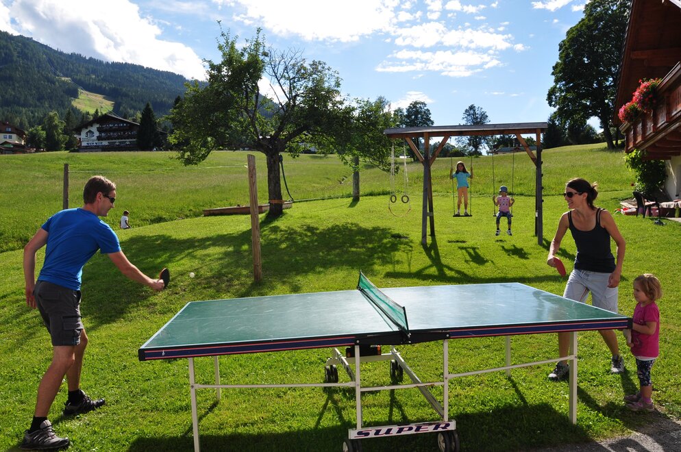 Bij ons voelen gezinnen zich bijzonder prettig.Zandbakken, schommels, in hoogte verstelbare rekstangen, tafeltennis, een enorm trampoline met Airflow- en Twinspringtechnologie, een klein natuurlijk beekje en onze kinderflotte (stepjes, loopfietsen, traptractoren, fietsen, Bobby-Cars) wachten op kleine ontdekkers. En in de omgeving: Hopsiland Planai, Hochwurzen Mountain GoKart, Rittisberg, Reiteralm, Hauser Kaibling en nog veel meer.