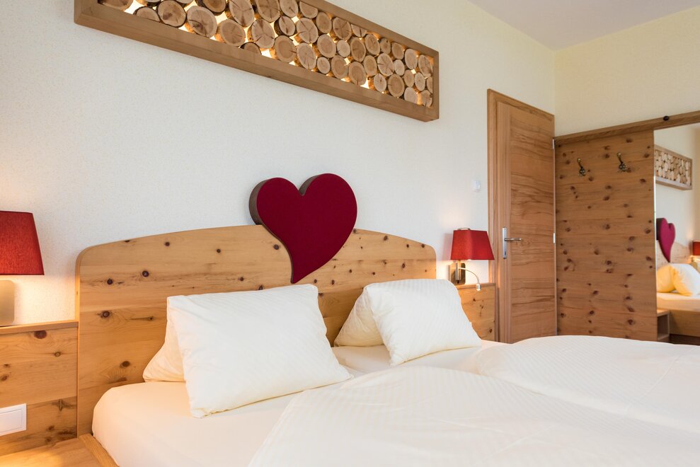 De in het voorjaar van 2016 liefdevol gerenoveerde kamer Hochwurzen nodigt met zijn op maat gemaakte meubels van beukenhout uit om te ontspannen en nieuwe energie op te doen.