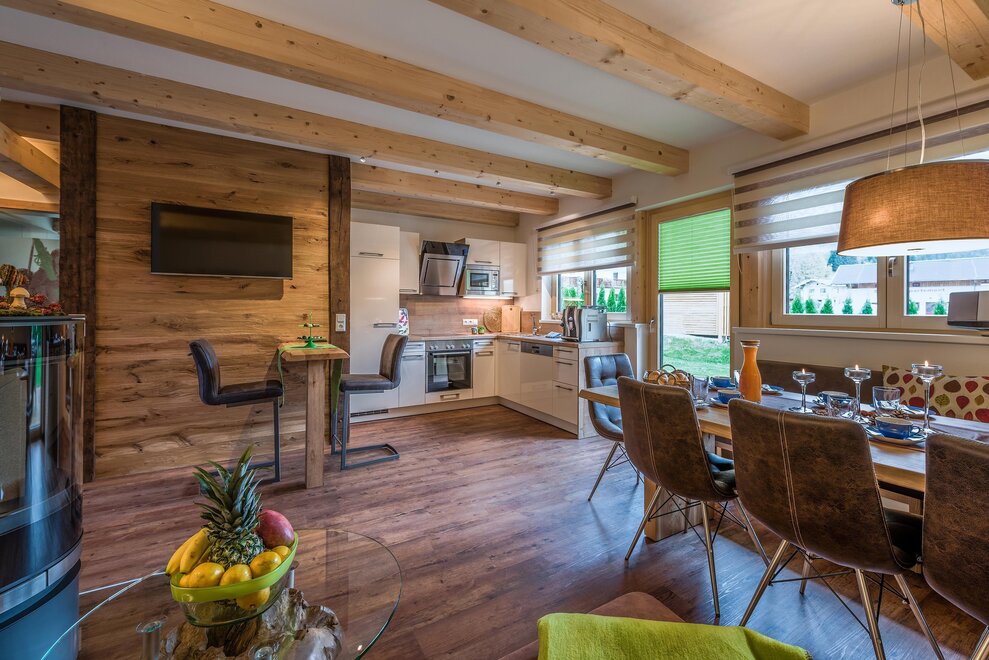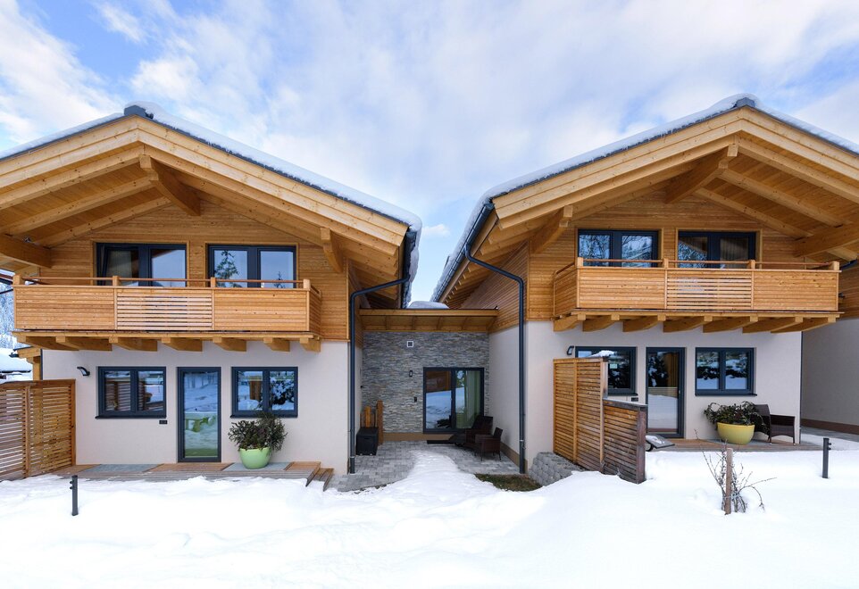 Onze luxe houten chalets voor 4-8 pers. direct aan de skilift / oefengebied. Ze overtuigen door een hoge kwaliteit, modern alpine inrichting en comfortabele voorzieningen. 3 slaapkamers, 3 badkamers, woonkamer met open haard, een eigen sauna.