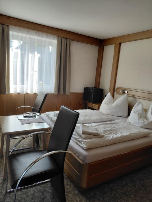 new renovated rooms with: shower, WC, Sat-TV, writing table, rockingchair, refridgerator, W-LAN and balcony with beautiful panorama view.