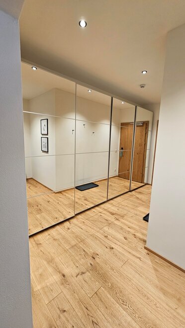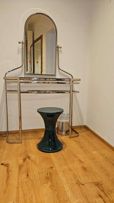 The large bathroom (over 10 m²) features a spacious rain shower. In the entrance area, there is a large wardrobe with plenty of storage space for longer stays and a vanity table.Bed distribution
