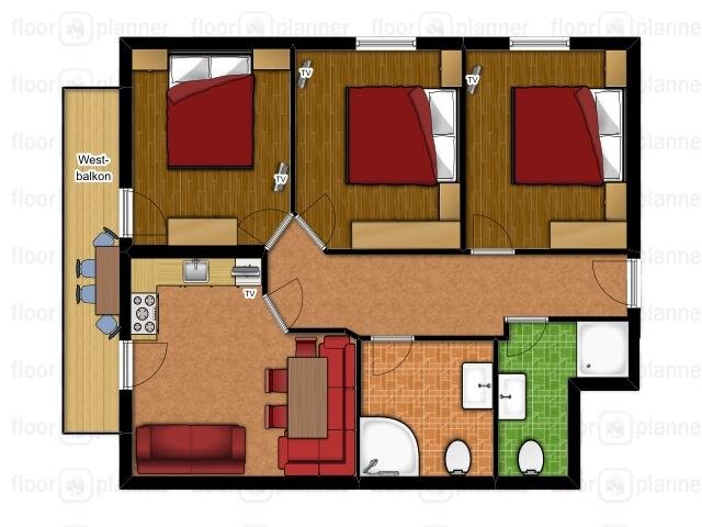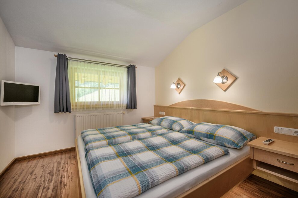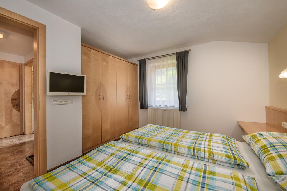 Apartment with 1 bedroom and TV, livingkitchen with a couch and TV, bath and a big sunny balcony. Cleaning and the tax for adults are not incl.
