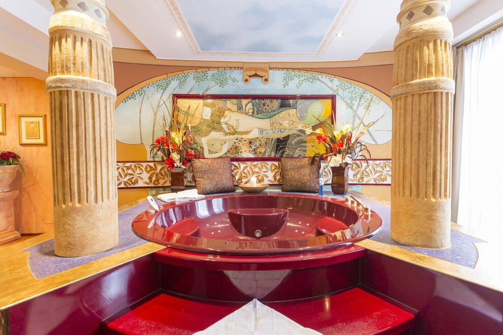 private bar, whirlpool, dressing room, balcony overlooking the garden, generous