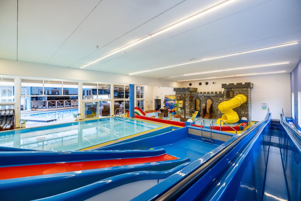 on 50 to 60 m² ... with separate living room with pull-out couch (can also be used as a 3rd bedroom), large bedroom with oversized king-size beds and romantic bathtub, bathroom with shower and WC, separate 2nd WC, separate children's room with 2 beds
