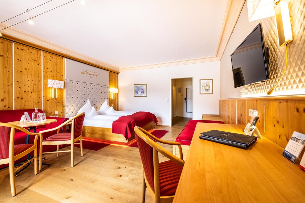 40-50 m² for families with 2 bedrooms, Living/bedroom, separate children's room with 2 or 3 beds, bath with shower and/or bathtub, sep. WC, parquet, 2 Flat-TV, safe,east or west side, balkon, living corner, partly dressing room, partlydesk.