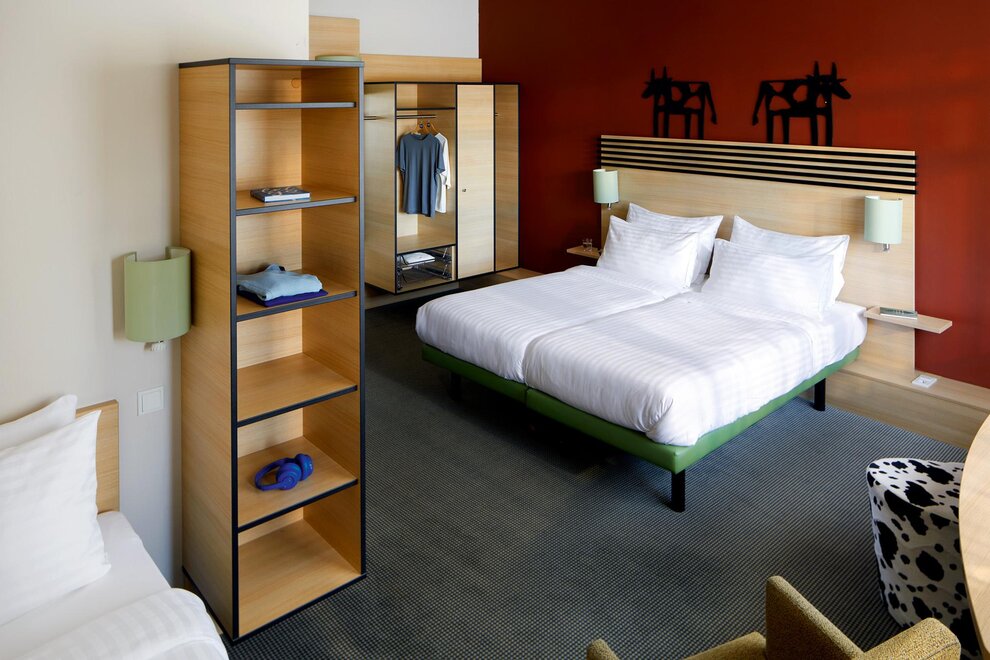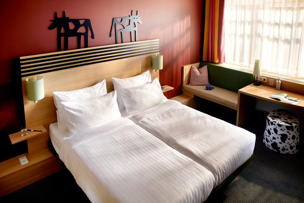 De modern ingerichte Superior Dreibettzimmer beschikt over 1 tweepersoonsbed (gescheiden matrassen) en 1 apart eenpersoonsbed. De wastafel is geïntegreerd in de kamer, de douche en het toilet ernaast zijn afzonderlijk. Geniet van entertainment via kabel-tv, radio via tv en gratis wifi.