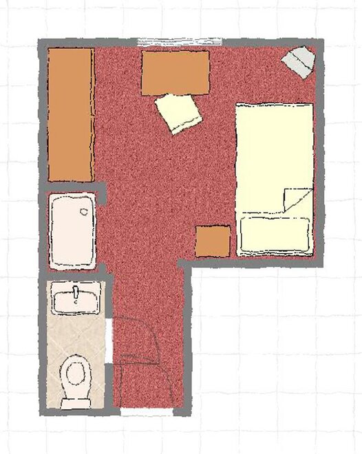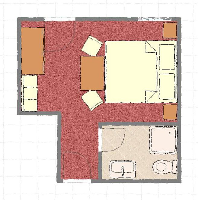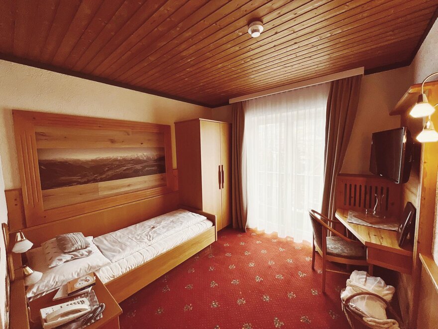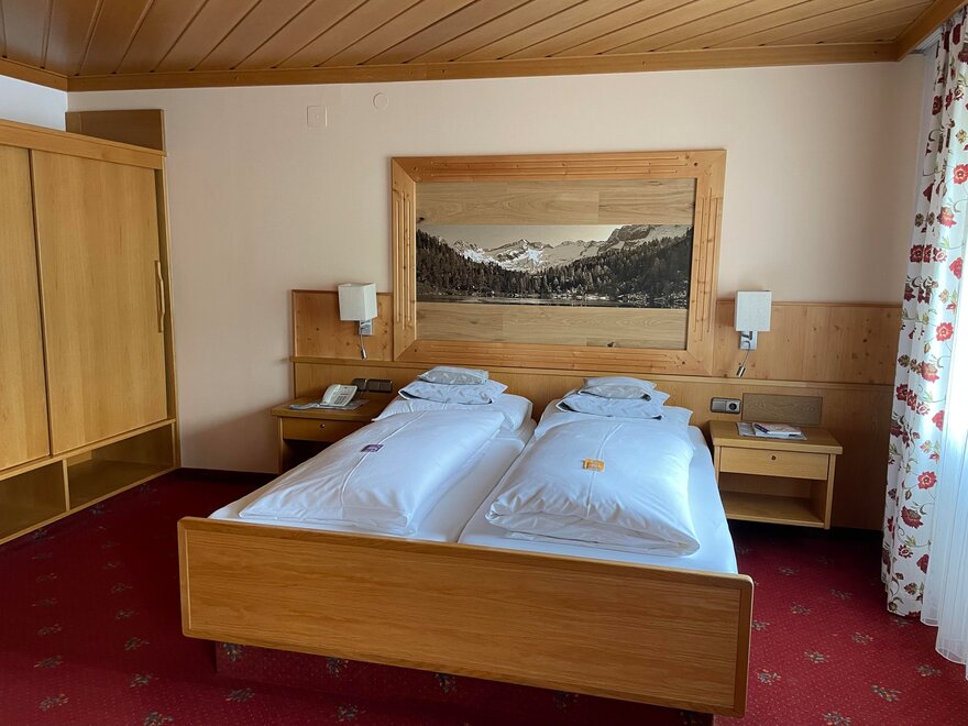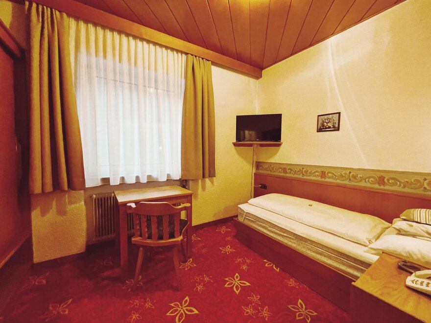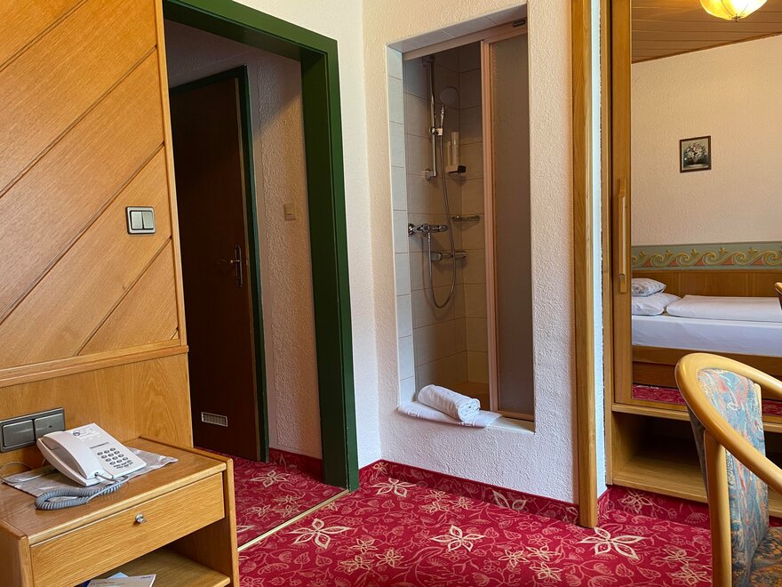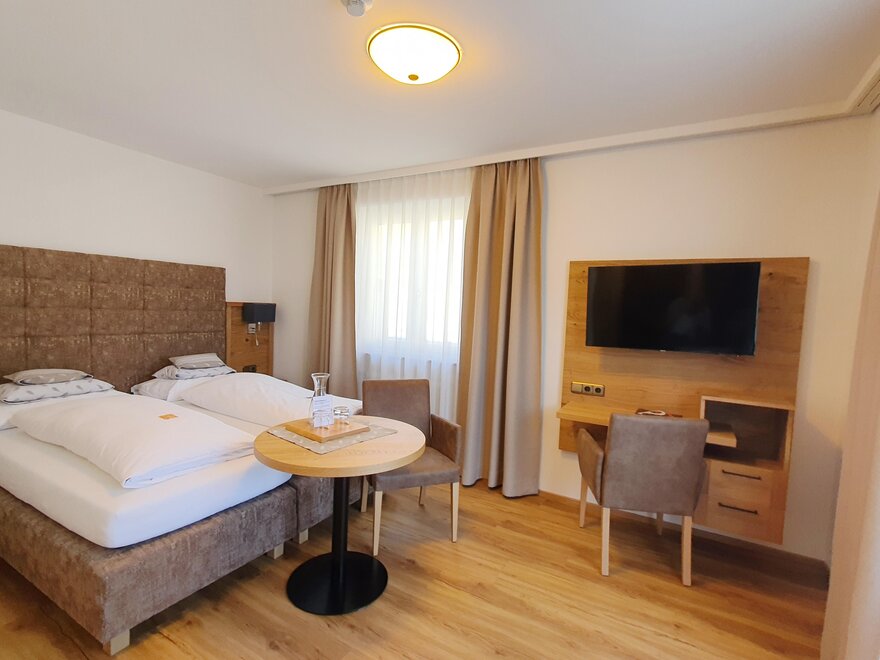 double room for 2 people with shower and WC, radio and TV with corner balcony and beautiful view of the Gastein mountains. Some of the rooms are furnished with a box-spring bed and wooden floor.