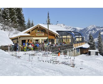 Direkt im Bergstationsgebäude der Schlossalmbahn. Sitzplätze Indoor/Outdoor: 280/300