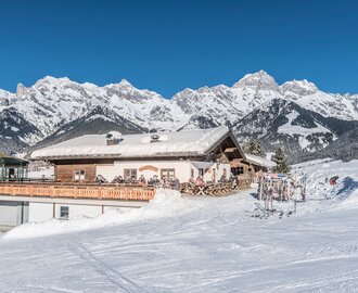 Die Quellbodenhütte war ursprünglich ein altes Bauernhaus in der Forstau und wurde 1995 als Skihütte hier wieder aufgebaut. In den zwei Bauernstuben mit Kachelofen soll sich jeder wohl fühlen und es sich gemütlich machen. Wenn Du nach einer deftigen Suppenschüssel oder einem Krapfen mit echtem Steirerkäse oder Honig gestärkt bist, kannst Du auf unserer Terrasse bei einer Tasse Kaffee das wunderschöne Panorama des Dachsteinmassivs genießen.