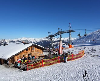 The Skialm Kreuzkogel is located directly between the two mountain stations of the Kreuzkogelbahnen at the highest point of the Grossarltal/Dorfgastein ski area. When the weather is nice you can enjoy the unique mountain panorama on the sun terrace. The rustic and cozy hut offers space for approx. 50-60 people. A special highlight is the après-ski bar right next to the hut.