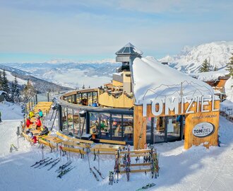 In the middle of a breathtaking mountain world at 1,870 m – at the mountain station of the Tauern cable car – you can indulge yourself in the TOMiziel with regional specialties and a unique sun terrace including a view of the Dachstein.