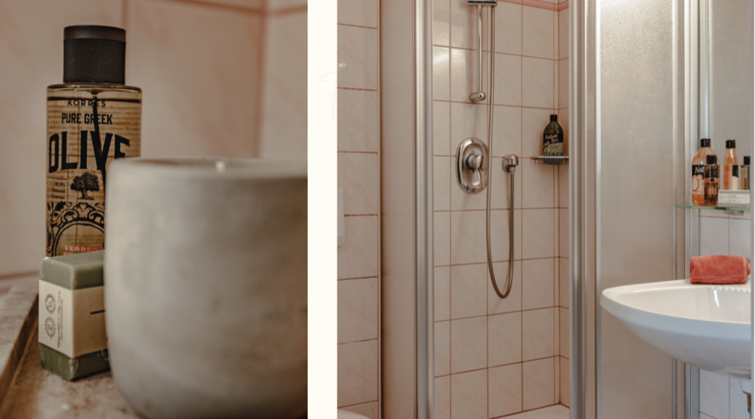 WC, bathtub with integrated shower, bieżąca woda ciepła/zimna