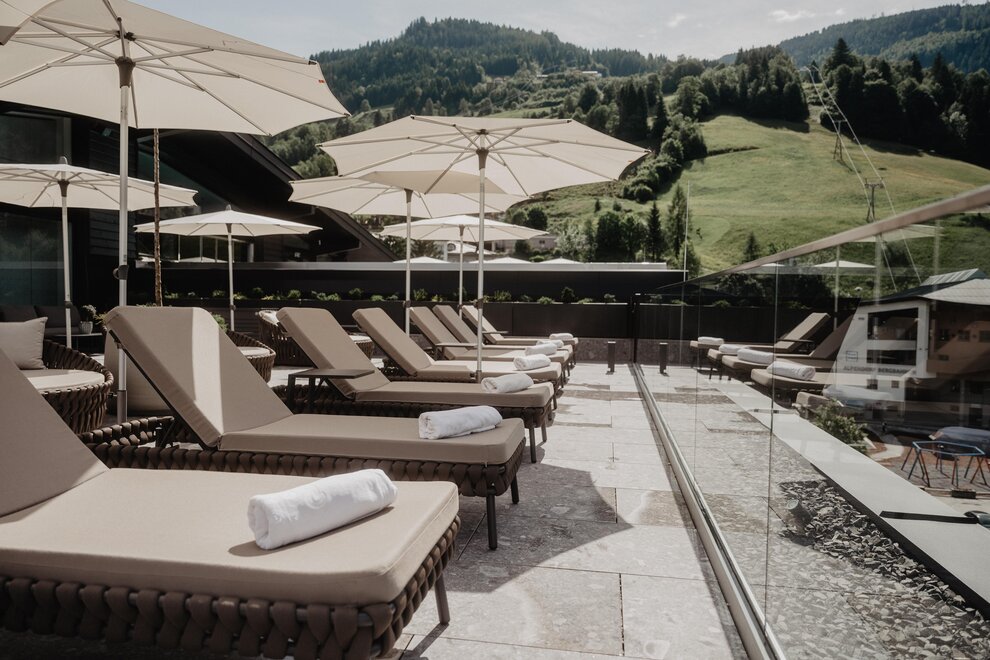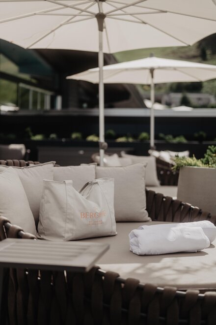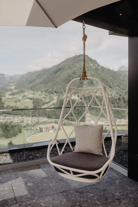 wooden floor, box-spring bed, comfortable writing and sitting area, bathroom with shower/WC, spacious loggia facing north, east or west, minibar, TV, safe, hairdryer, cosmetic mirror, vegan care products, spa bag inclusive bathrobes & slippers