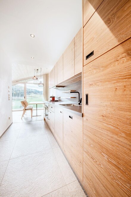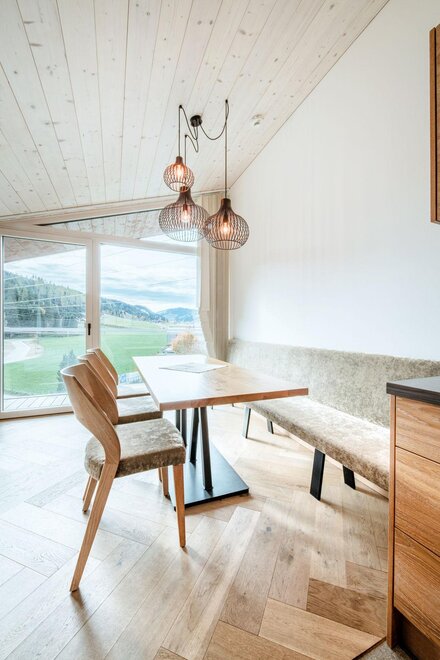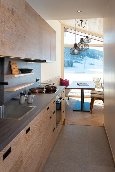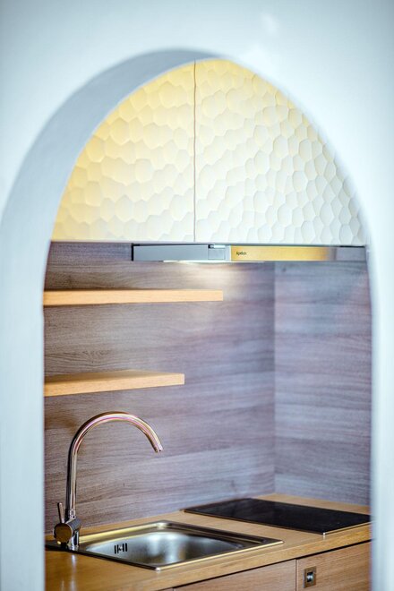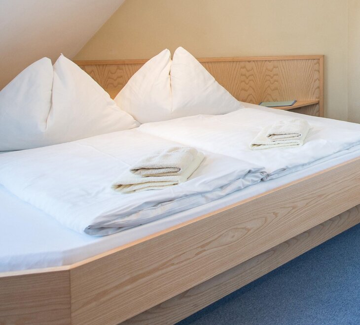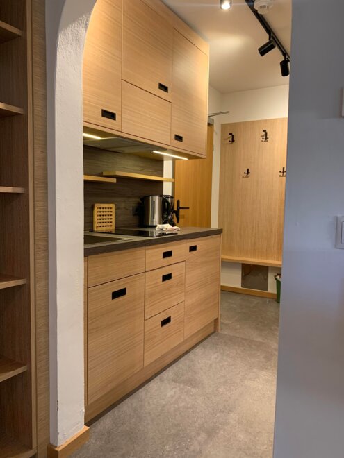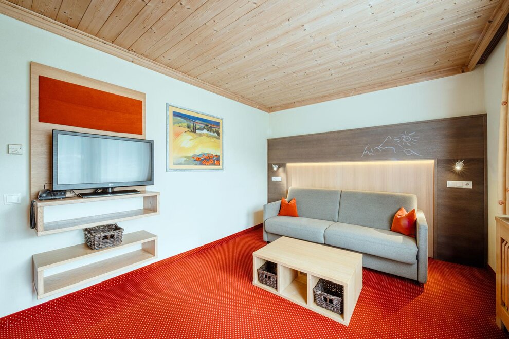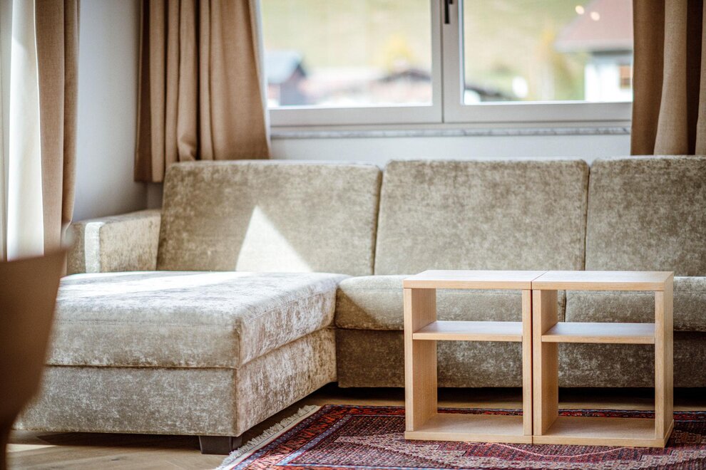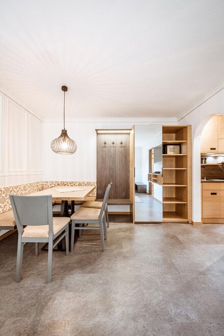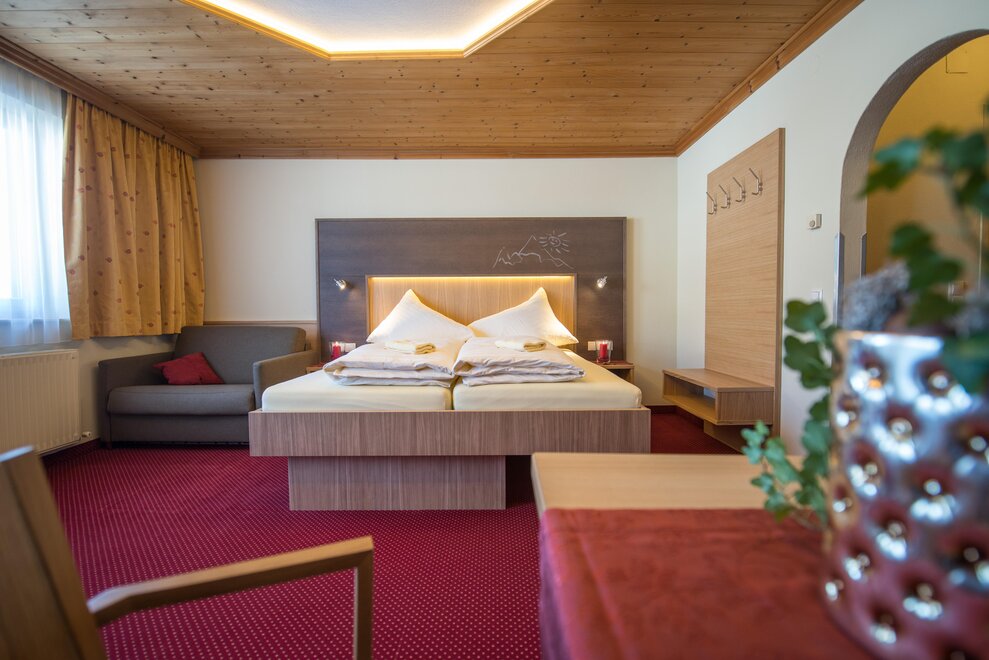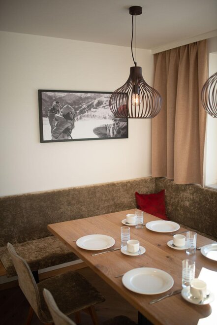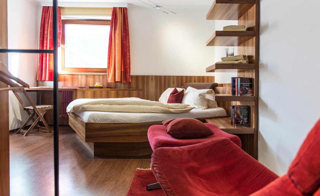 Wohnen bis 2 Personen. Einzimmerappartement, Wohn-/Schlafraum mit Doppelbett, Ferienkochnische, Eckbank, Dusche/WC, Balkon, Safe, Fön, Kabel-TV, Radio und Telefon. Mit Verbindungstüre zu Quartett Mansarfe buchbar.