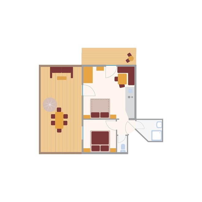 For up to 2 persons. One-room apartment with a small entrance area, living/sleeping area with double bed, kitchenette, shower, WC, balcony, safe, hairdryer, cable TV, radio, and telephone. Some are equipped with a corner bench.