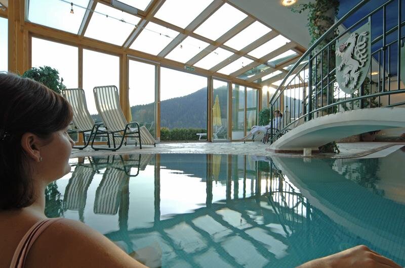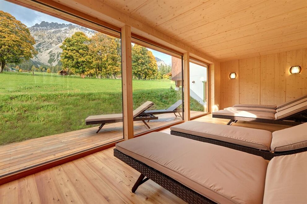 Zanurz się w naszym atrakcyjnym basenie z kamieni (5 x 11 m) z wspaniałym widokiem panoramicznym na Schladminger Tauern. Wyposażony w system przeciwprądowy, ławkę z hydromasażem, dysze do masażu, efekty świetlne oraz przestrzeń do opalania zarówno wewnątrz, jak i na zewnątrz.