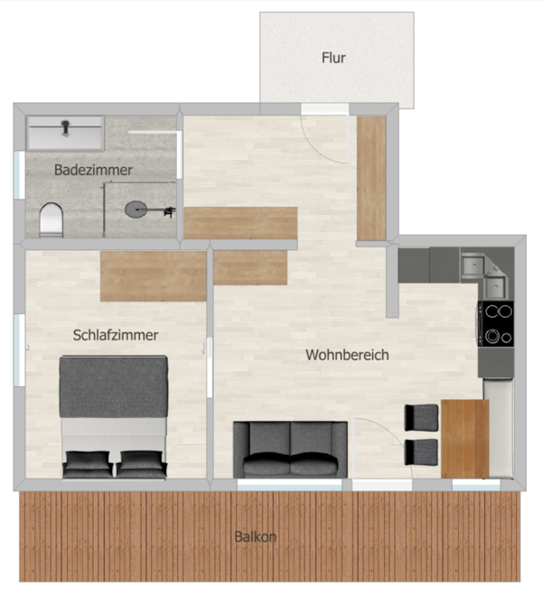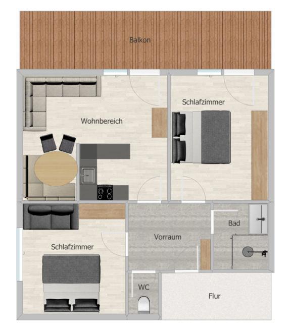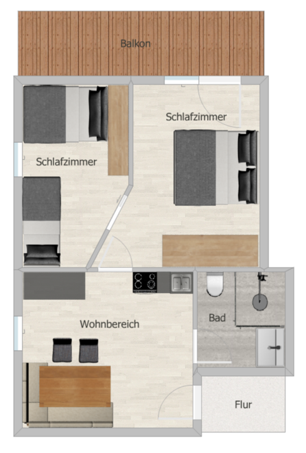 comfortable apartement | two large bed rooms | living room with kitchen | bath room and seperate toilet | balcony with view to the garden