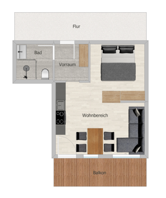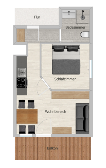 one-room apartment | comfortable facilities for 2 persons (for 3rd person sleeping on the couch possible) | balcony with view to the Dachstein