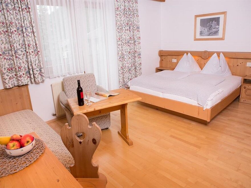 spacious double room | cozy couch (bed for 3rd person) | equipped with wooden furniture | view towards Dachstein Mountains
