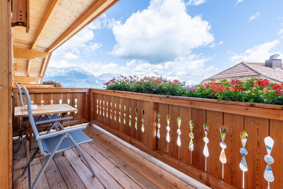 Stejerskie drewno pełne sosny limby i elementy starego drewna nadają pokojowi jego naturalny urok. Kącik wypoczynkowy, szlachetne materiały naturalne i pachnące drewno naturalne emanują szczególną przytulnością. Na południowym balkonie mogą Państwo cieszyć się świeżym powietrzem górskim, słońcem i idylliczną panoramą nad ogrodzeniem dla jeleni i łąkami.